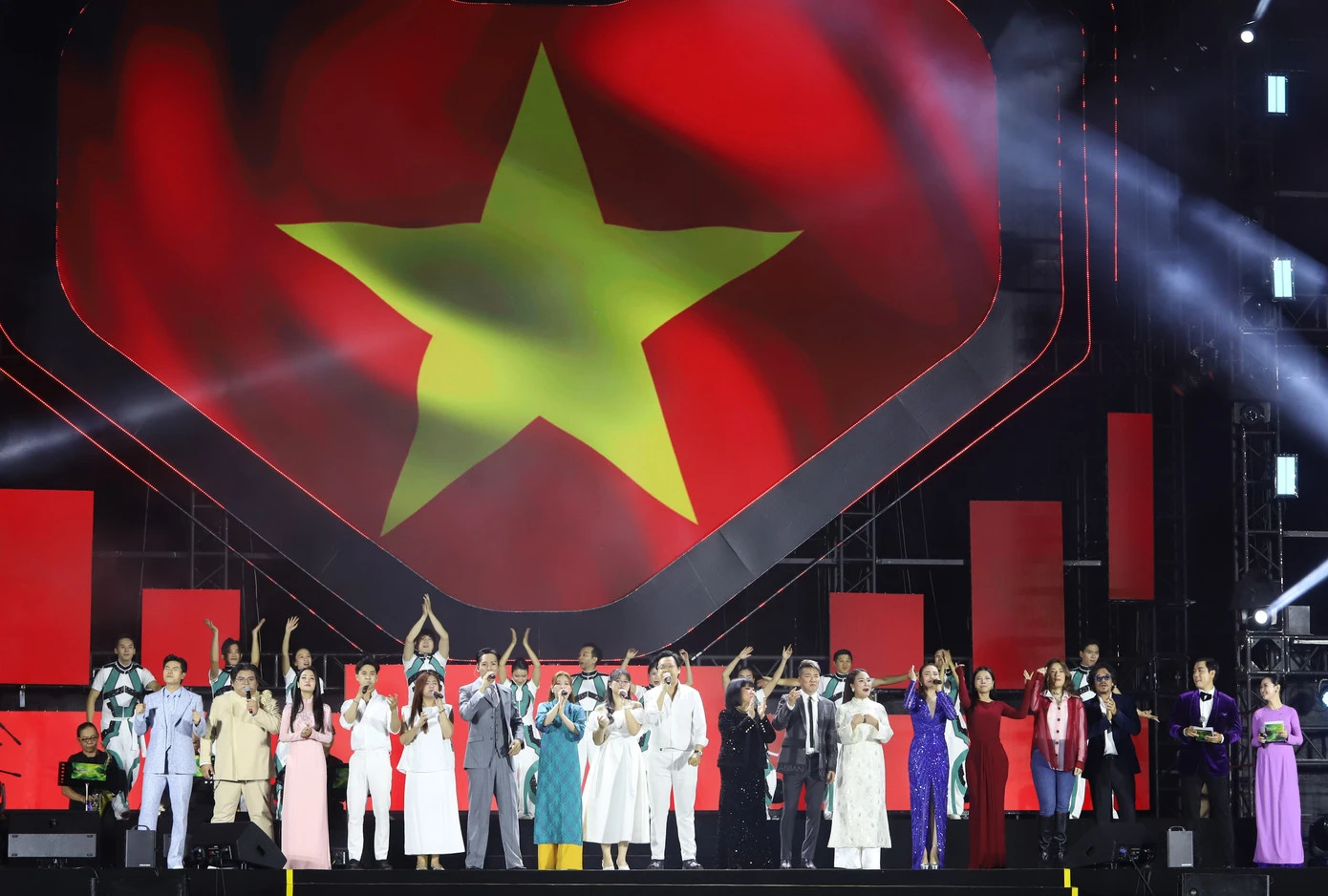 Các ca sĩ, nghệ sĩ tham gia chương trình cùng hòa vang ca khúc khép lại đêm nhạc nghĩa tình.