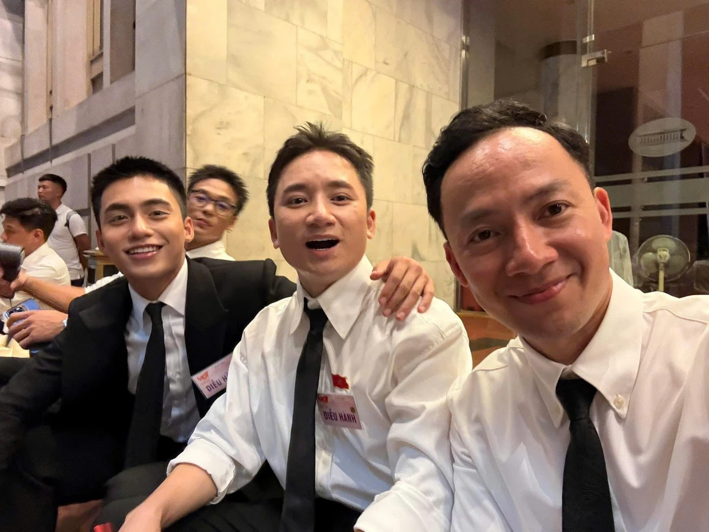 Đức Phúc ghi lại khoảnh khắc trước giờ bước ra diễu hành và biểu diễn tại Quảng trường Ba Đình. ” Hướng về đại lễ. Ngay lúc này, Đức Phúc đã sẵn sàng cho Lễ kỷ niệm, diễu binh, diễu hành A 80″, nam ca sĩ viết.
