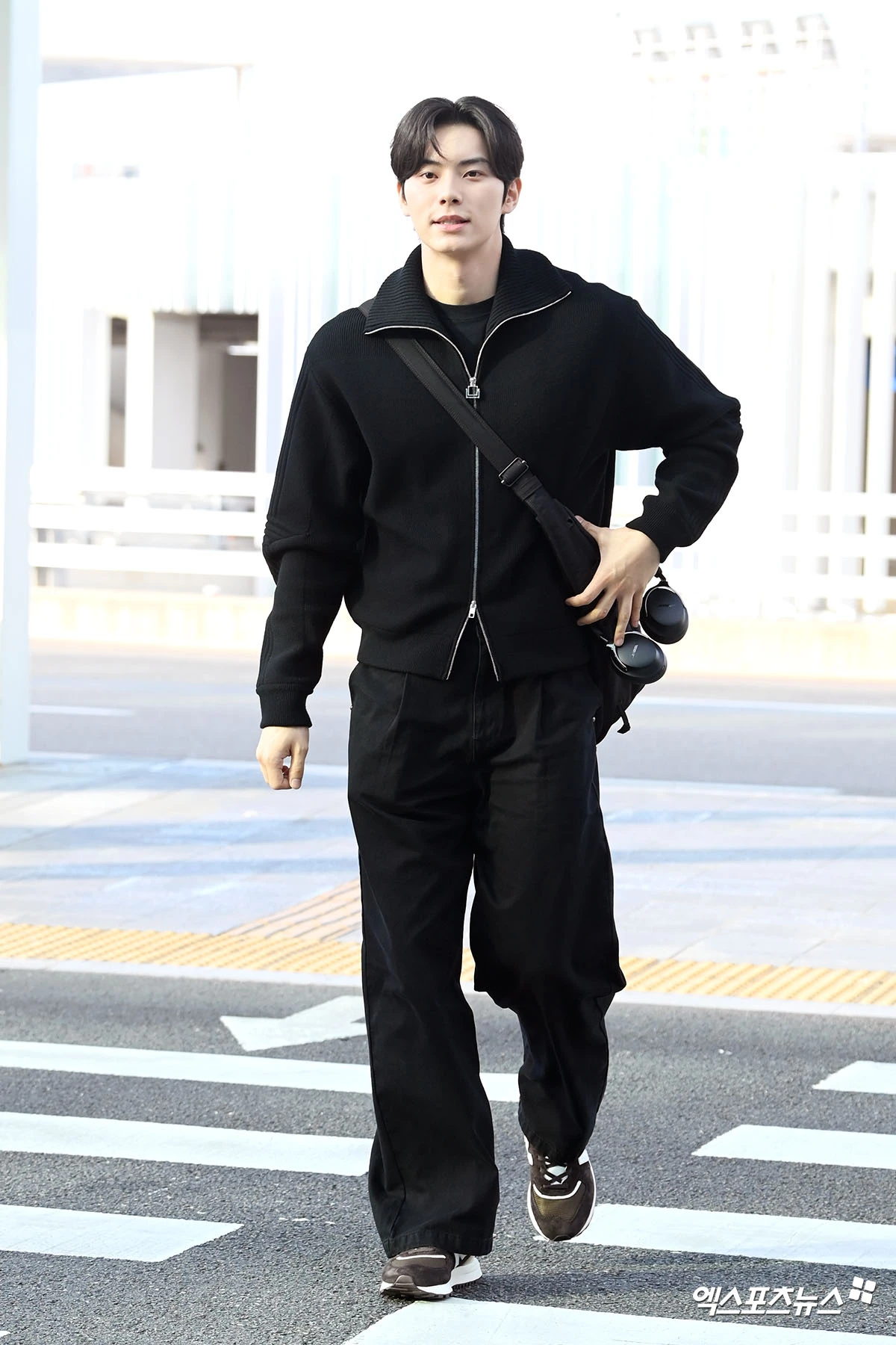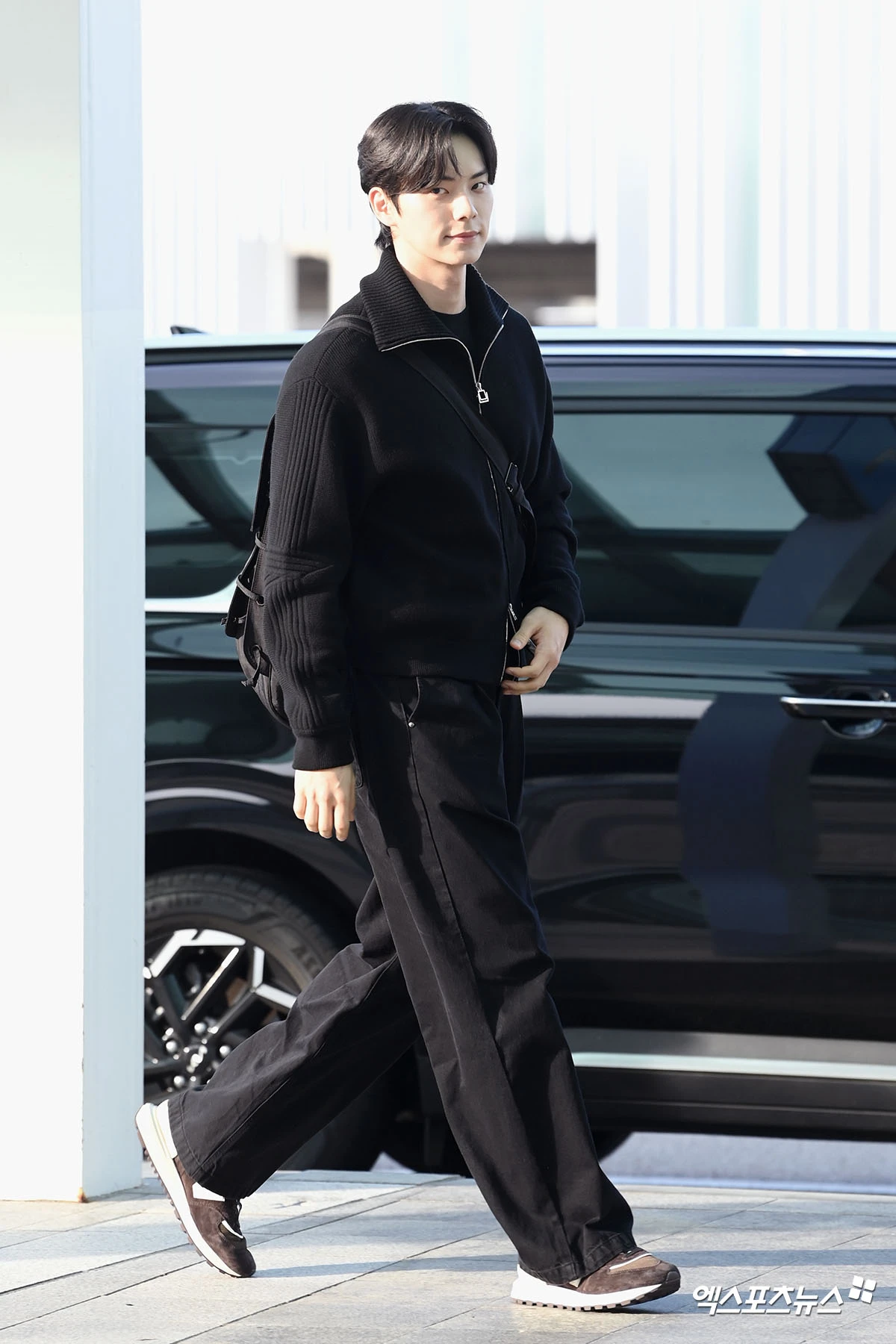 Lee Chae Min diện cây đồ đen đơn giản nhưng tôn dáng, làm nổi bật chiều cao 1m90