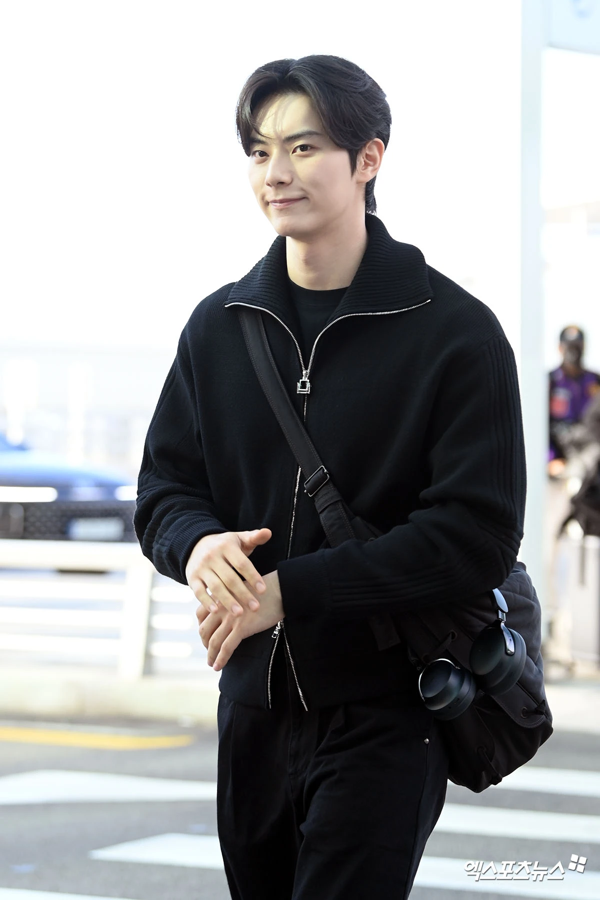 "Chôn ha" Lee Chae Min cũng khiến mạng xã hội phải dậy sóng. Nam thần mới nổi diện cây đen đơn giản nhưng đầy cuốn hút, tôn lên thân hình cao lớn đến 1m90 cùng visual điển trai ngút ngàn. Vẻ đẹp lạnh lùng sang chảnh chuẩn "tổng tài" của Lee Chae Min vô cùng nổi bật trong loạt ảnh sân bay này. Truyền thông Hàn Quốc không tiếc lời ca ngợi diễn viên sinh năm 2000 là "Kẻ đánh cắp trái tim thế hệ mới", "Vẫy tay làm rung động lòng người"...