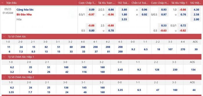 Tỷ lệ cược CH Séc vs Bồ Đào Nha: