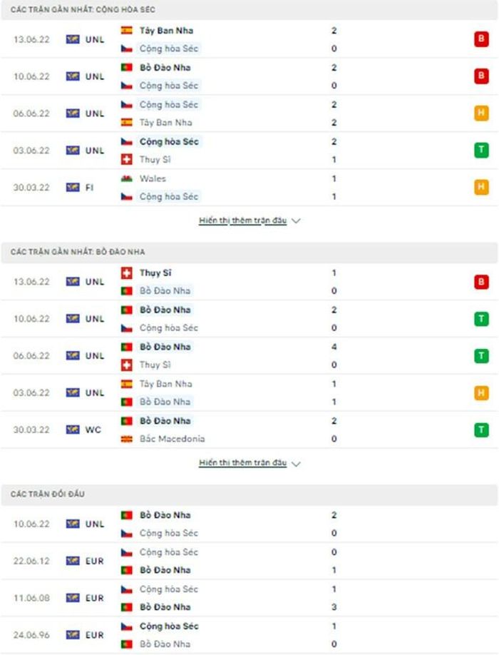 Một điểm tựa khác để các cầu thủ Bồ Đào Nha thêm phần tự tin trong trận đấu tới là họ đang toàn thắng trong cả 3 lần gần nhất gặp CH Séc, ghi 6 bàn và chỉ thủng lưới duy nhất 1 lần.