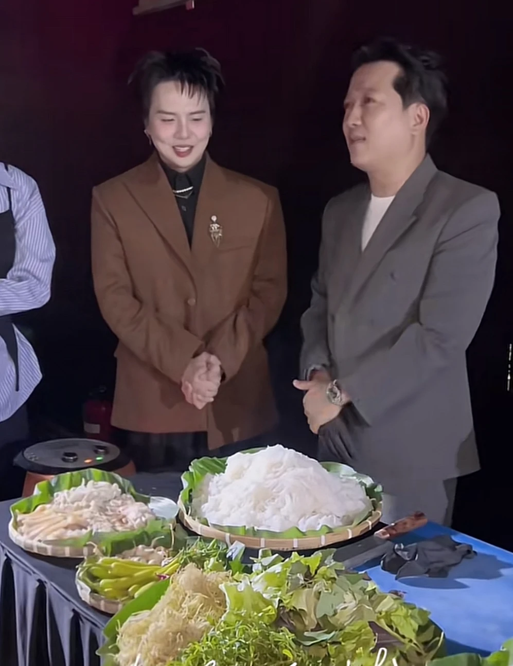Trường Giang chuẩn bị nhiều mâm đồ ăn rất chỉn chu cho Hoà Minzy đãi nghệ sĩ đến dự (ảnh: @chiechaivbiz)