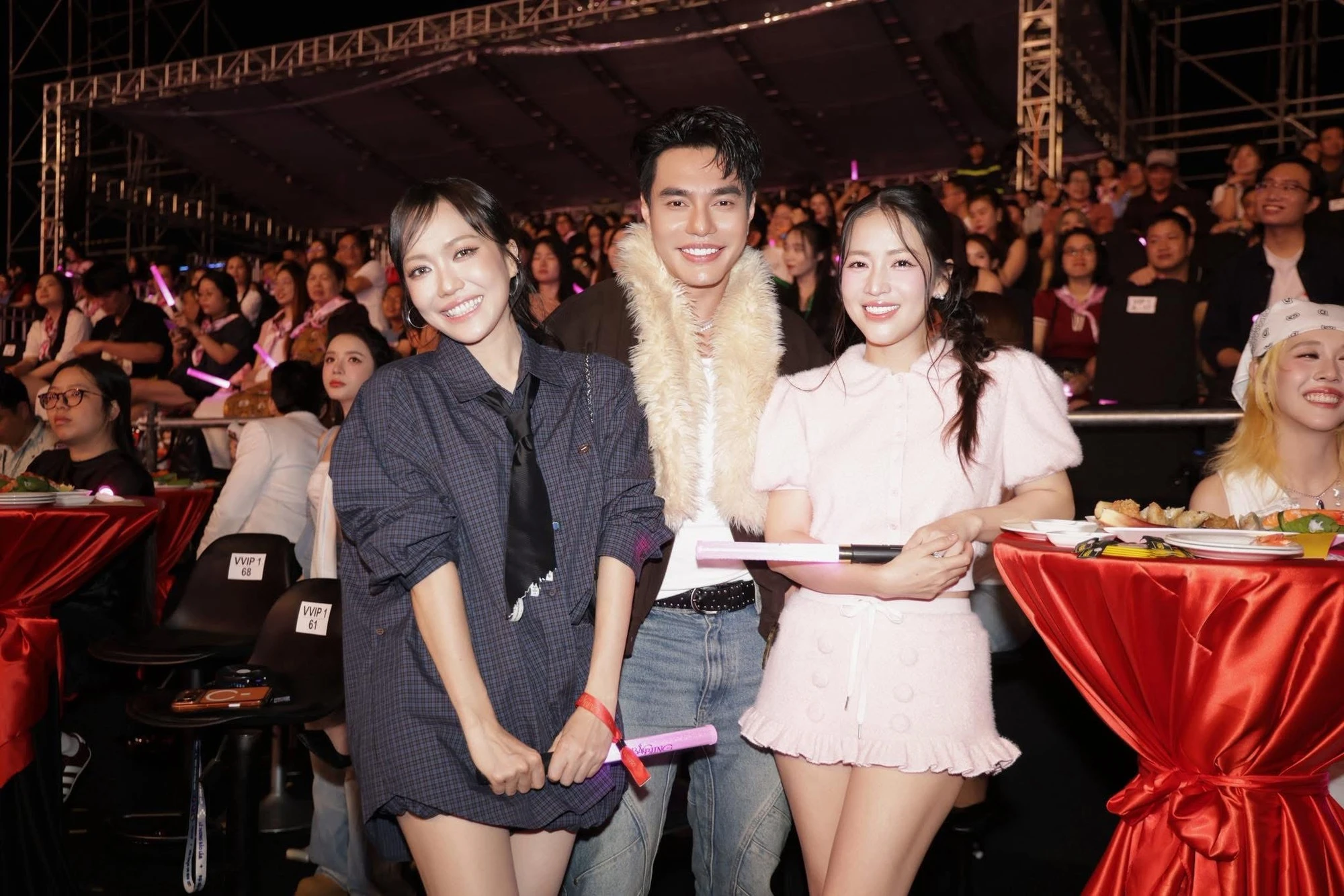 Không chỉ khán giả, khu vực khán đài còn trở nên rộn ràng khi hàng loạt nghệ sĩ Việt xuất hiện để cổ vũ tinh thần cho Hòa Minzy. Có thể kể đến những cái tên quen thuộc như Ngô Kiến Huy , Lê Dương Bảo Lâm , Cris Phan , Puka , Sam, Duy Khánh , nhà thiết kế Đỗ Long. Đặc biệt, sự xuất hiện của hội Chị đẹp gồm Diệp Lâm Anh , Trang Pháp , Chi Pu, Diệu Nhi và Hậu Hoàng khiến không khí càng thêm sôi động. Dàn sao nữ lên đồ chỉn chu, rạng rỡ đọ visual nét căng. Đáng nói, trong bức ảnh do Sam đăng tải, Thúy Ngân bất ngờ trở thành tâm điểm chú ý khi xuất hiện với diện mạo khá khác lạ. Visual mới mẻ của nữ diễn viên nhanh chóng được cư dân mạng bàn luận.