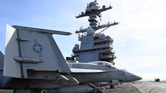 Tiêm kích F-18 chuẩn bị cất cánh từ tàu sân bay USS Gerald R. Ford năm 2025. Ảnh: Getty Images