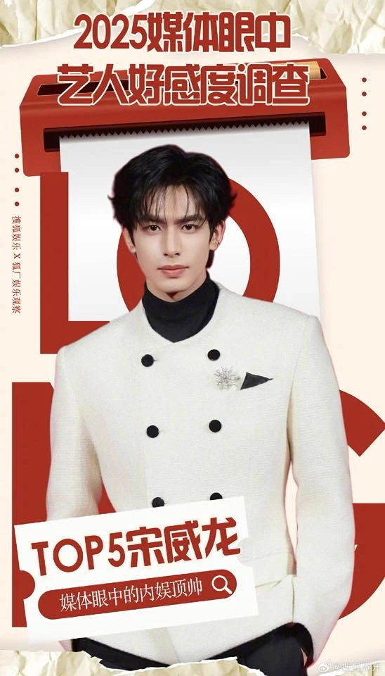 Vương Hạc Đệ, Lý Lan Địch và Tống Uy Long là những cái tên còn lại trong Top 5 nghệ sĩ nhận được hảo cảm lớn từ truyền thông năm 2025. Ảnh: Sohu.