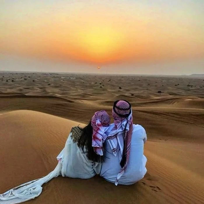 Du khách ngắm cảnh hoàng hôn trên “Khu vực trống” (Empty Quarter) của Oman. Ảnh: Viator