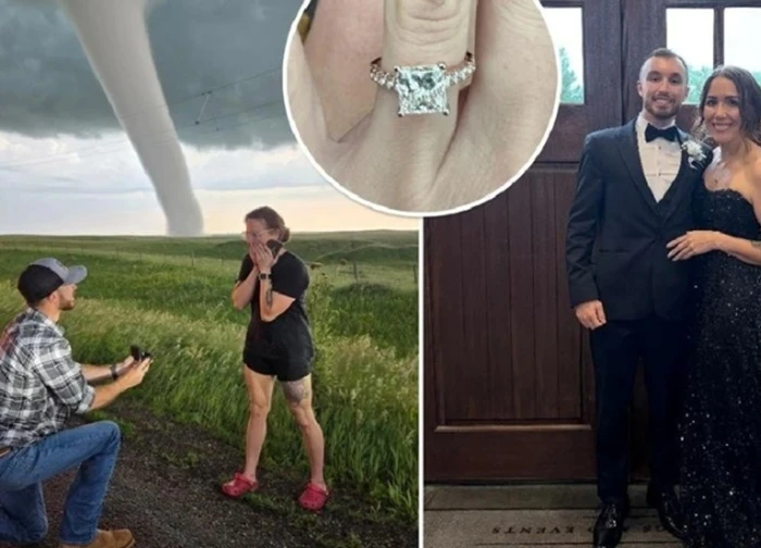 Một người đàn ông đã biến khoảnh khắc thiên nhiên dữ dội thành kỷ niệm để đời khi cầu hôn bạn gái ngay trước một cơn lốc xoáy khổng lồ.
