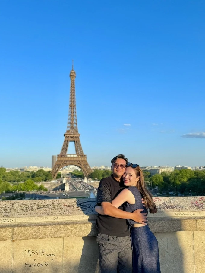 Đan Lê khoe khoảnh khắc tình tứ với ông xã, đạo diễn Khải Anh, dưới chân tháp Eiffel (Pháp) trong chuyến du lịch hè 2025.