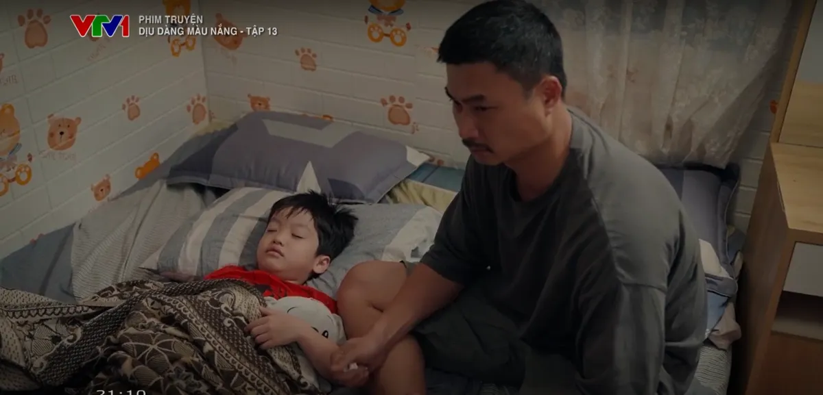 Ở một diễn biến khác của "Dịu dàng màu nắng" tập 13, Xuân (Ngọc Huyền) ngỡ ngàng khi Bắc (Duy Hưng) có vẻ đã thay đổi sau vụ bé Khoai đi lạc. Anh không còn say xỉn và ý thức dậy sớm để chuẩn bị nấu đồ ăn sáng, đưa con đi học chứ không còn bê tha như trước. Thấy Xuân có vẻ lo lắng cho cháu mình, Bắc nói: "Lo cái gì. Anh đẻ ra nó, anh phải lo cho nó tử tế". Xuân nói chuyện gì qua rồi thì cho qua, Bắc phải sống vì con, giờ mà Bắc có chuyện gì thì con trai biết trông vào ai.