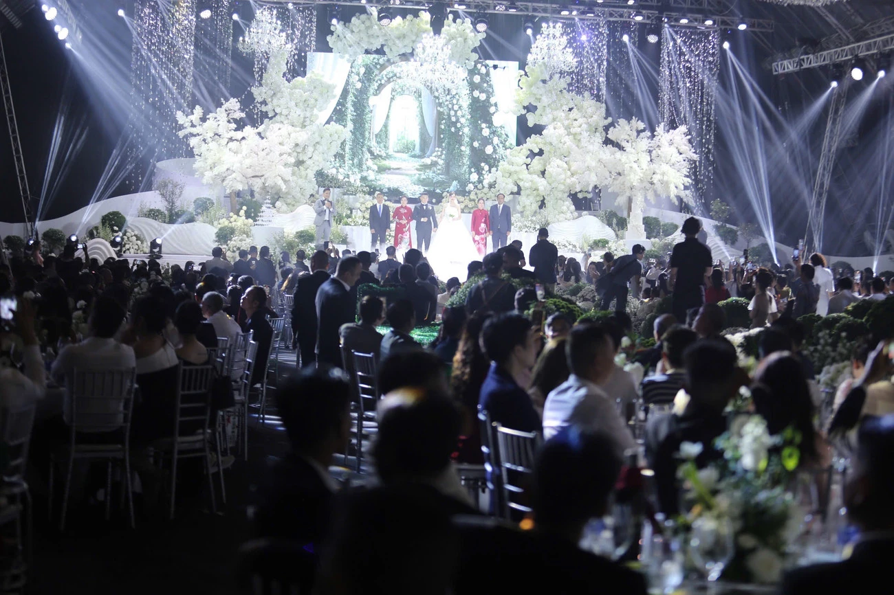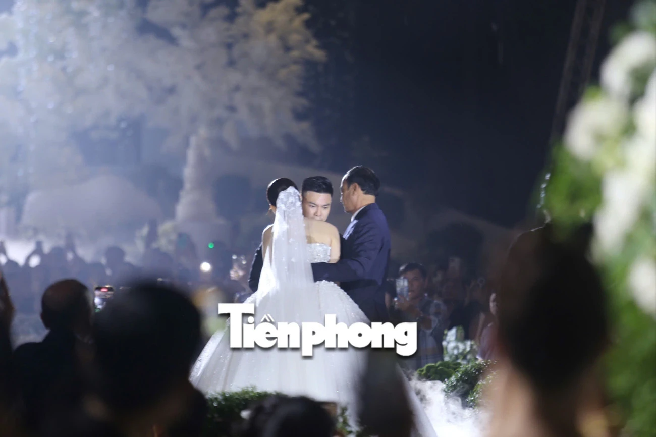 Về phía nhà trai, ông Nguyễn Viết Hải - cha của chú rể và cũng là chủ tịch tập đoàn Sơn Hải trước khi rước dâu cũng đã có bài phát gây xúc động. Ông bày tỏ sự trân trọng đối với gia đình nhà gái, đồng thời hứa sẽ yêu thương, dạy dỗ để con dâu ngày càng phát triển, hạnh phúc bên con trai mình.