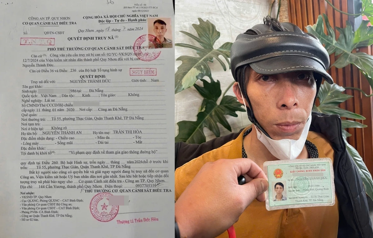 Lợi dụng thời gian này, Nguyễn Thành Đức đã bỏ trốn khỏi nơi cư trú, nhiều lần không chấp hành giấy triệu tập của cơ quan Công an. Đến giữa tháng 7/2024, Cơ quan Cảnh sát điều tra Công an thành phố Quy Nhơn, tỉnh Bình Định ra quyết định khởi tố bị can đối với Đức về tội “Vi phạm quy định về tham gia giao thông đường bộ”. Tuy nhiên, do đối tượng đã bỏ trốn khỏi nơi cư trú nên cơ quan Công an đã ra quyết định truy nã đối với Đức.