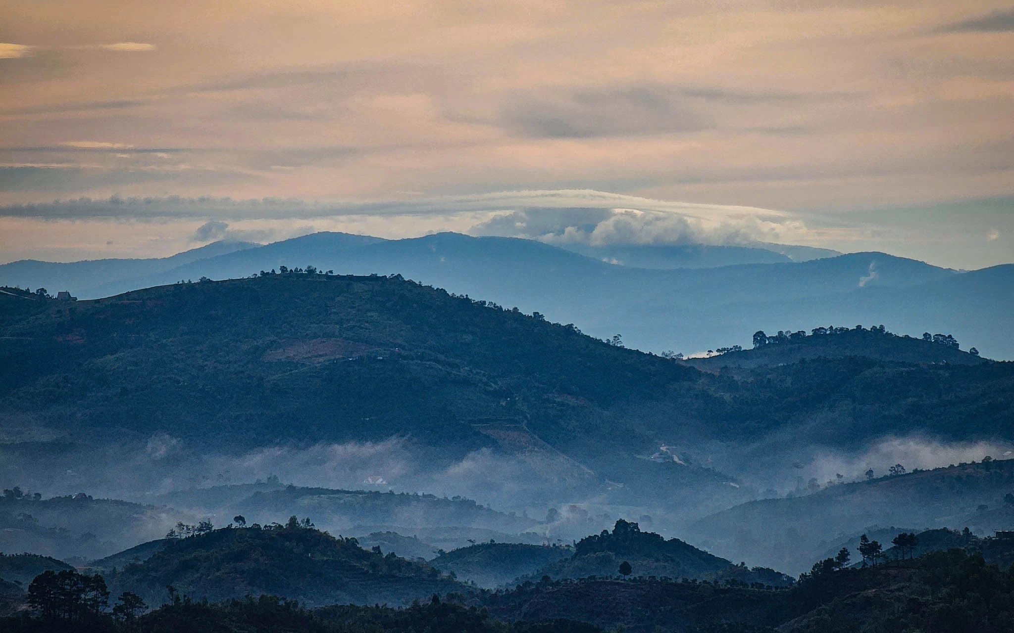Theo kinh nghiệm của nhiều du khách, thời điểm săn mây đẹp nhất ở đồi Vô Ưu là từ khoảng 5h30 đến 7h30 sáng. Khi đó, mặt trời dần nhô lên khỏi những dãy núi xa, ánh sáng chuyển sắc liên tục, hòa vào tầng tầng lớp lớp mây tạo nên khung cảnh biến đổi từng phút. Ảnh Ngô Trần Hải An