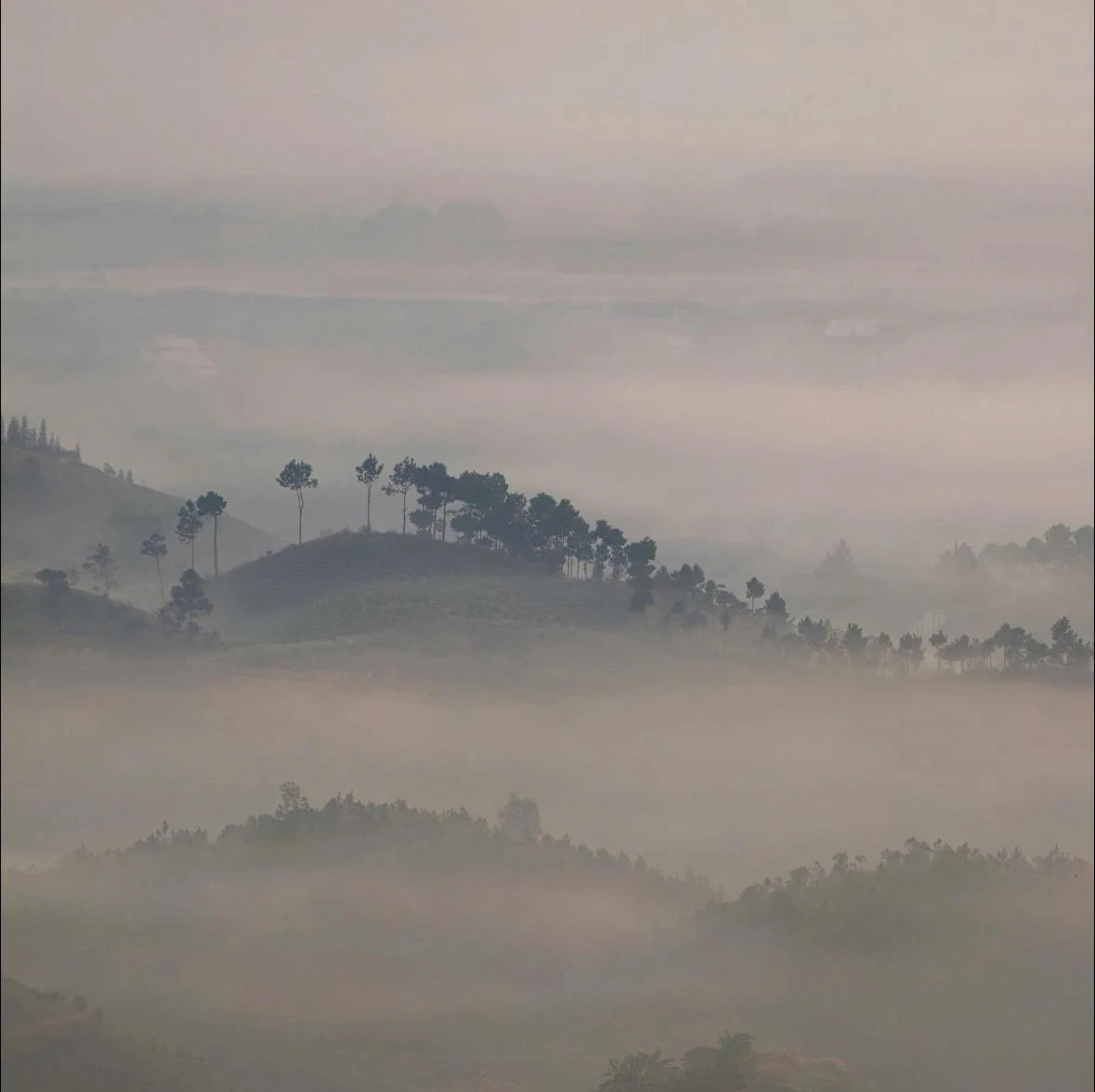"Biển mây" vào sáng sớm ở đồi Dổi trải dài bồng bềnh, tạo nên khung cảnh thơ mộng. Khi mặt trời dần ló dạng, ánh sáng vàng nhẹ len qua những lớp mây và tán cây, khiến không gian như khoác lên mình một "tấm áo mới" rực rỡ.
