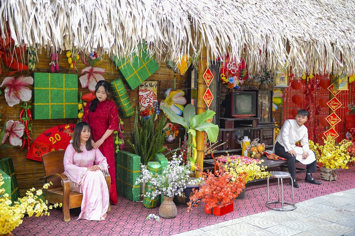 Không gian “Chợ quê Tết xưa” được tái hiện sinh động tại Khu du lịch Động Tiên Sơn, gợi nhớ nét văn hóa truyền thống trong những ngày đầu xuân.