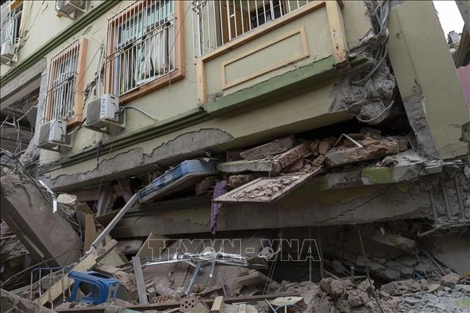 Tòa nhà bị phá hủy sau trận động đất tại Mandalay, Myanmar. Ảnh minh họa: THX/TTXVN