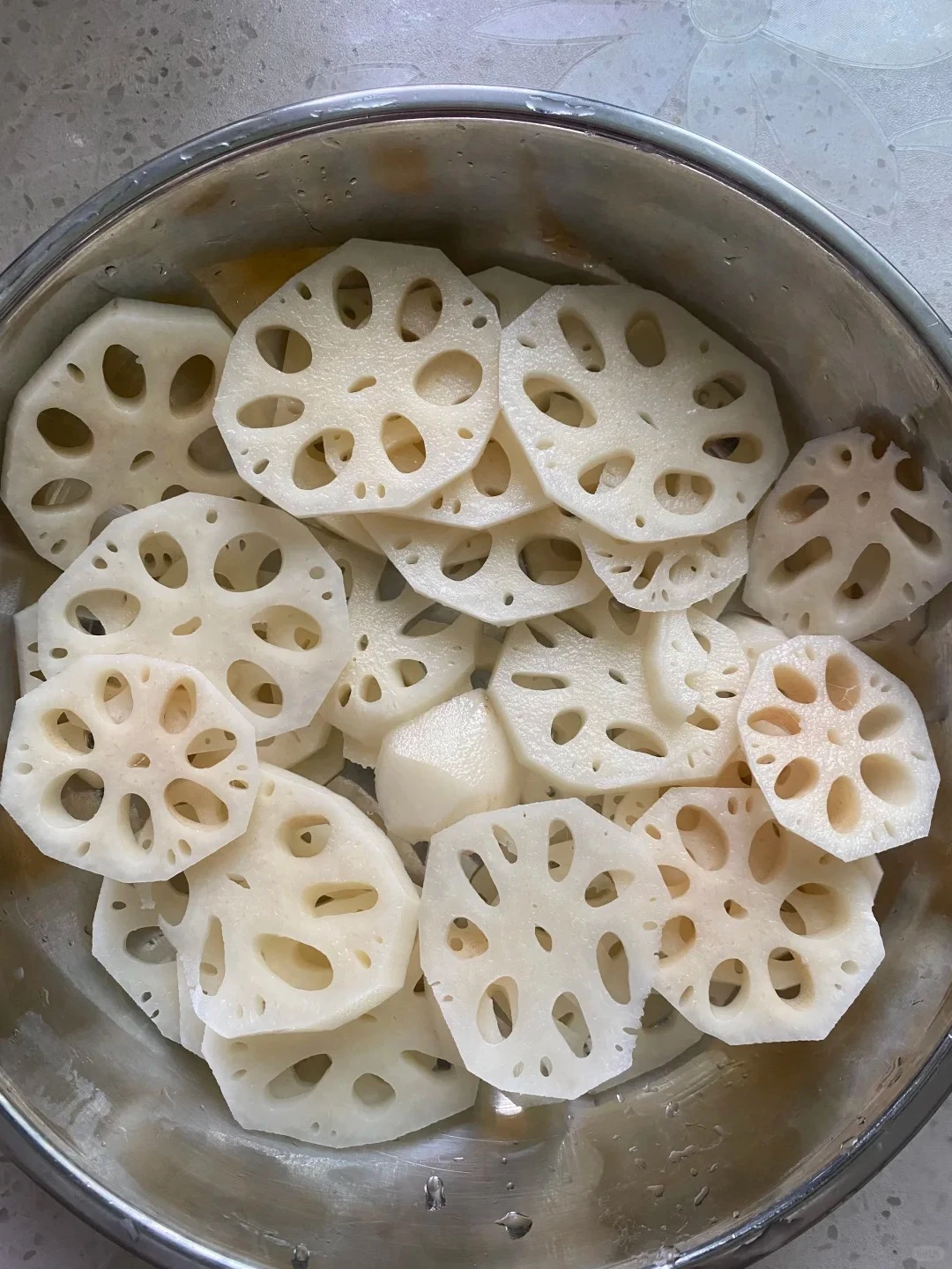 Sườn ngâm 30 phút thay nước vài lần cho sạch máu, vớt ra để ráo. Ướp sườn với nước tương – rượu – muối – bột năng 20-30 phút. Củ sen gọt vỏ, cắt lát mỏng và ngâm ngay vào nước để tránh thâm. Lót sườn ở dưới, xếp củ sen lên trên, thêm gừng và hành. Hấp 30-40 phút đến khi sườn mềm và củ sen chín dẻo, rưới chút dầu mè trước khi mang ra bàn.