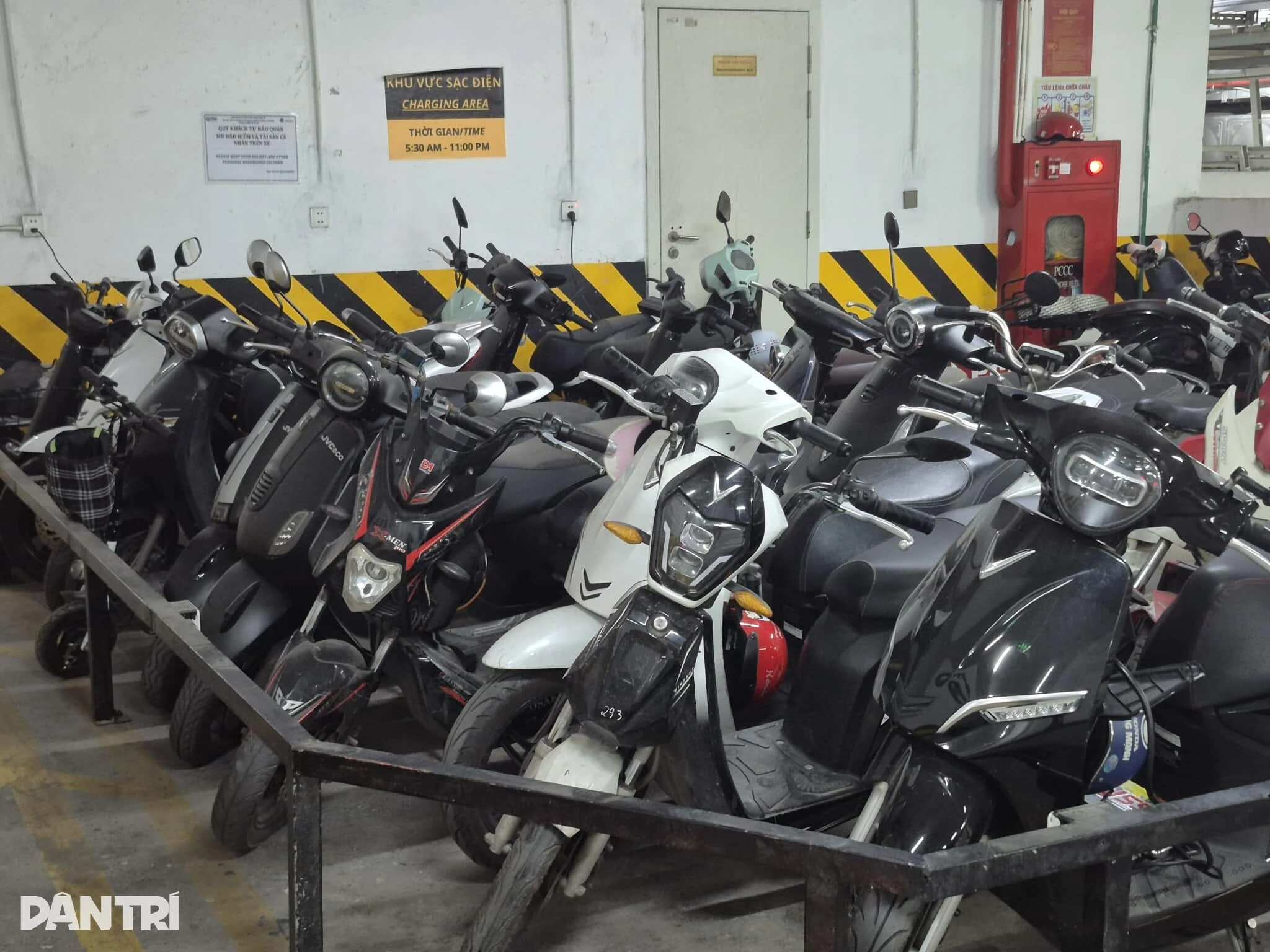 Tại hầm gửi xe, xe điện, xe máy xăng được chia thành các khu vực riêng biệt. Ảnh: Đức Hoàng