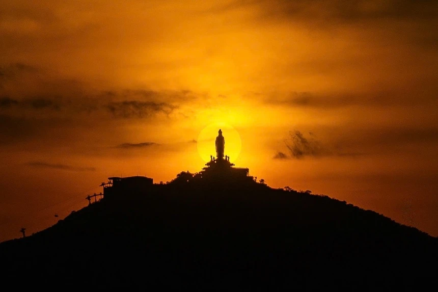 | Ánh nắng chiều rực rỡ nhuộm vàng trên đỉnh núi Bà Đen. Ảnh: Triều Potorapy. |