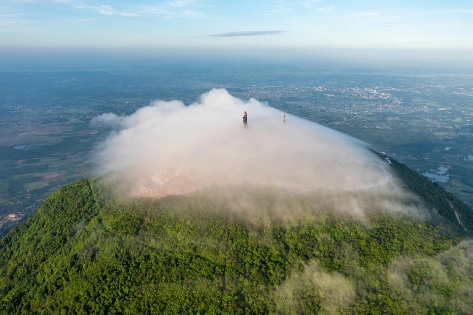 | Khung cảnh núi Bà Đen phủ mây huyền ảo nhìn từ trên cao Ảnh: Triều Potorapy . |