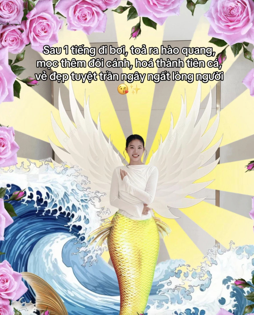 Chưa dừng lại ở đó, Ánh Viên còn khiến dân mạng bật cười với màn “biến hình” cuối cùng: từ cô gái đời thường trở thành “tiên cá toả hào quang”, đầy năng lượng và xinh đẹp, đúng với hình ảnh đã gắn liền với tên tuổi của cô suốt nhiều năm.