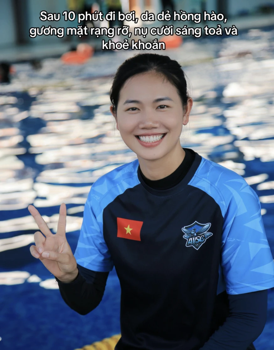 Hoá ra, không phải nhan sắc xuống dốc hay có biến gì nghiêm trọng, mà đơn giản đây chỉ là cách Ánh Viên pha trò, tự trêu chọc bản thân và nhấn mạnh một điều quen mà lạ: với cô, bơi lội không chỉ là đam mê mà còn là “liều thuốc hồi sinh” cho tinh thần và thần thái.