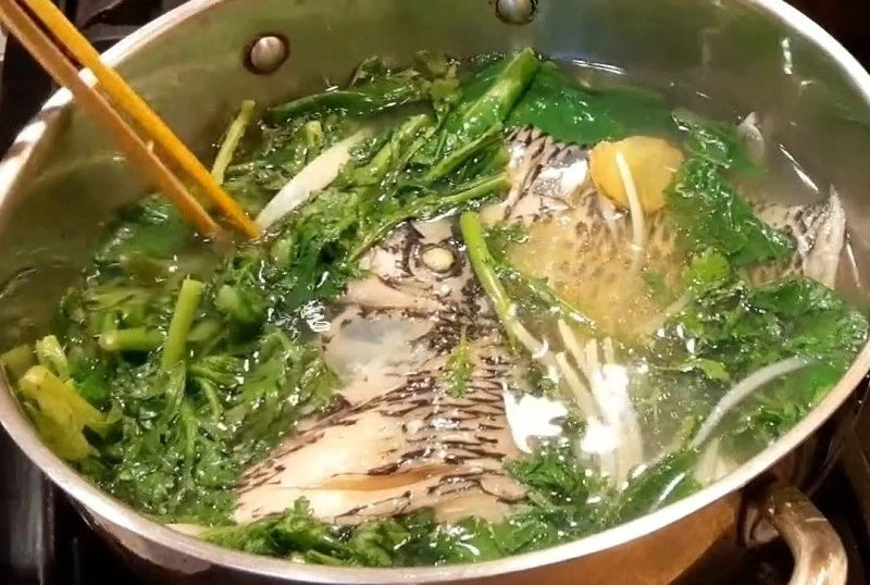 Khi thưởng thức, cải cúc giòn ngon, không bị đắng, thịt cá săn chắc, ngọt, nước canh đậm đà, mang đến cảm giác ấm cúng cho bữa ăn gia đình.