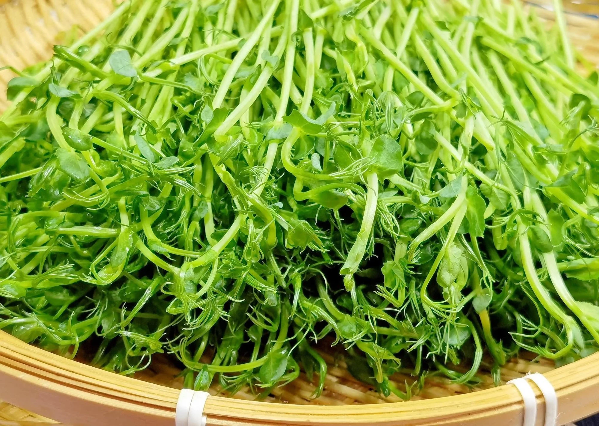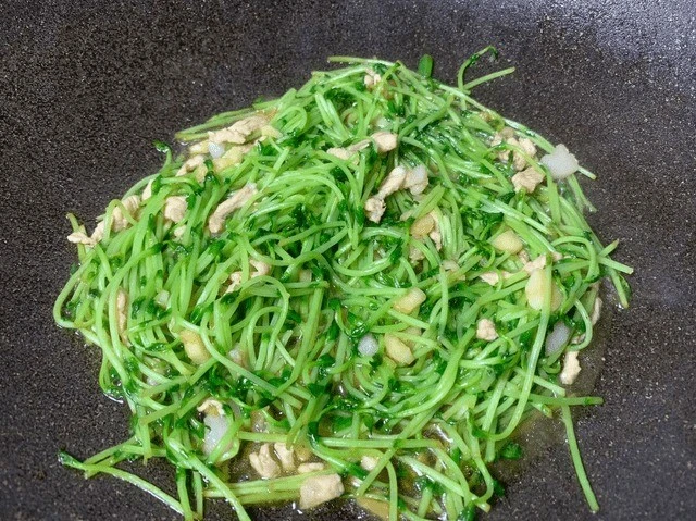 Rau mầm đậu Hà Lan là phần thân và lá non sau khi hạt đậu nảy mầm. Chúng có kết cấu mềm mại và hương thơm tươi mát. Chúng chỉ được bán với giá khoảng 150-170 nghìn một cân, nhưng lại là “báu vật” hiếm có trên bàn tiệc mùa xuân. Nó không chỉ giàu vitamin C, vitamin K, axit folic và chất xơ mà còn chứa nhiều protein thực vật và chất chống oxy hóa. Y học cổ truyền cho rằng rau mầm đậu Hà Lan có thể “bổ ngũ tạng, thanh nhiệt, trừ độc, trừ thấp, bổ tỳ vị”, đặc biệt thích hợp để ăn vào mùa xuân. Khoa học dinh dưỡng hiện đại cũng đã khẳng định, chất diệp lục trong rau mầm đậu Hà Lan (mầm đậu Hà Lan) có thể thúc đẩy quá trình giải độc; kali có thể điều hòa cân bằng nước trong cơ thể và chất xơ có thể bảo vệ sức khỏe đường ruột.