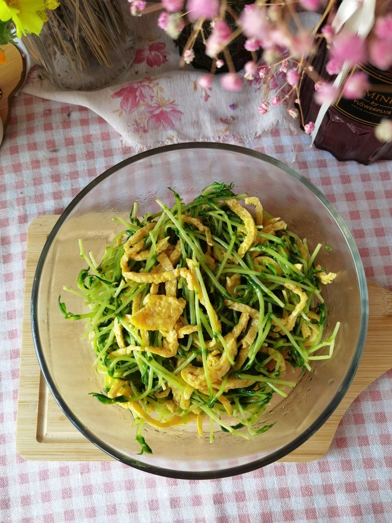 2. Trứng chiên xào rau mầm đậu hà Lan: Dễ làm, giúp bổ gan, sáng mắt