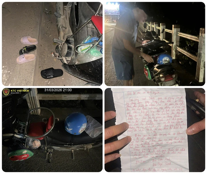 Người dân xôn xao trước việc 3 mẹ con mất tích, để lại chiếc xe máy cùng nhiều đồ đạc và bức thư tại hiện trường.