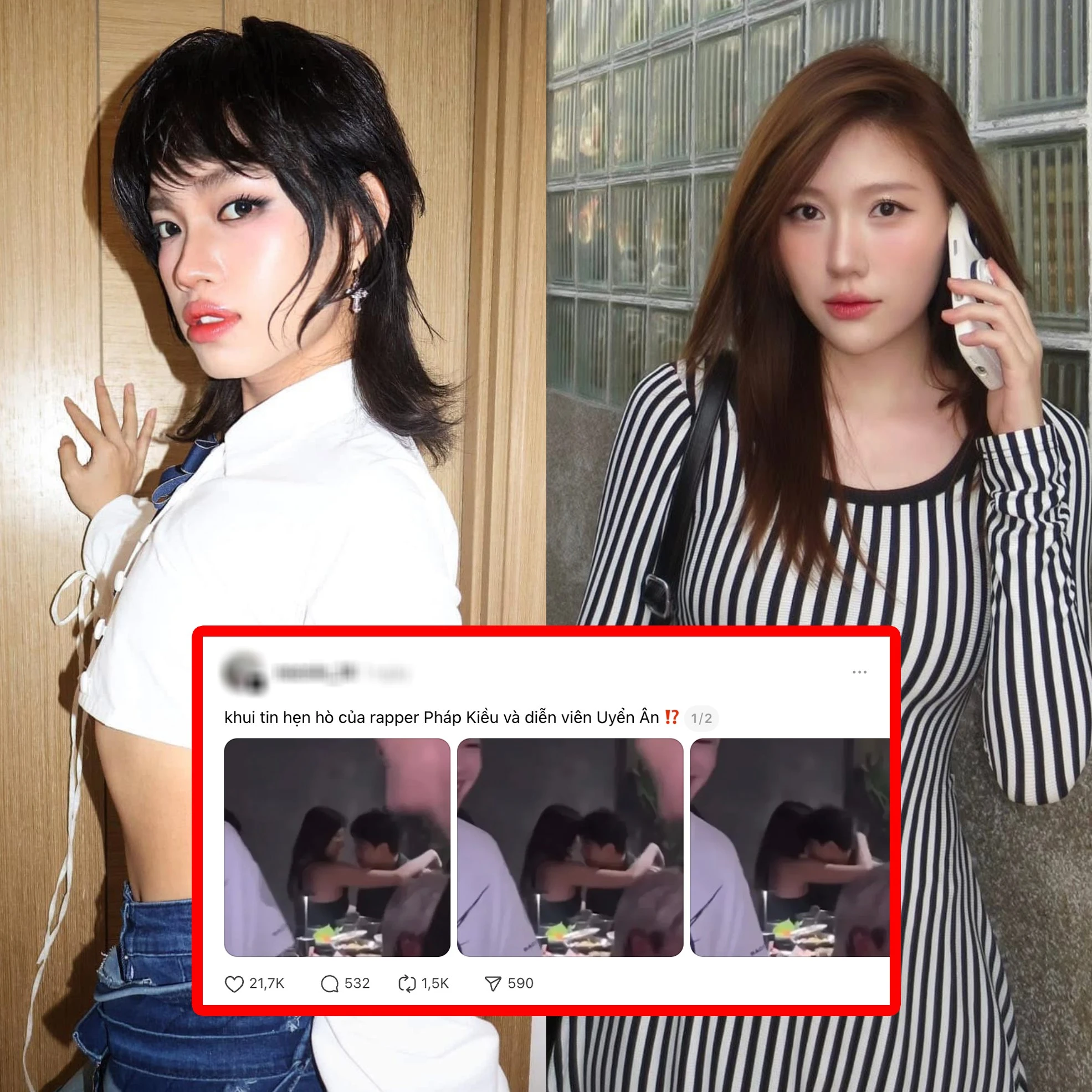 Trước đó, trên mạng xã hội Threads, loạt ảnh tình tứ của Uyển Ân và Pháp Kiều khiến netizen được phen rôm rả. Cả hai được bắt gặp khi đang chụm đầu vào nhau, nói chuyện riêng trong vô cùng thân mật. Cũng từ đó, loạt khoảnh khắc chung của Uyển Ân và Pháp Kiều được fan chia sẻ rần rần, có cả đoạn clip đu trend chung và tương tác không thua gì cặp đôi mới yêu.
