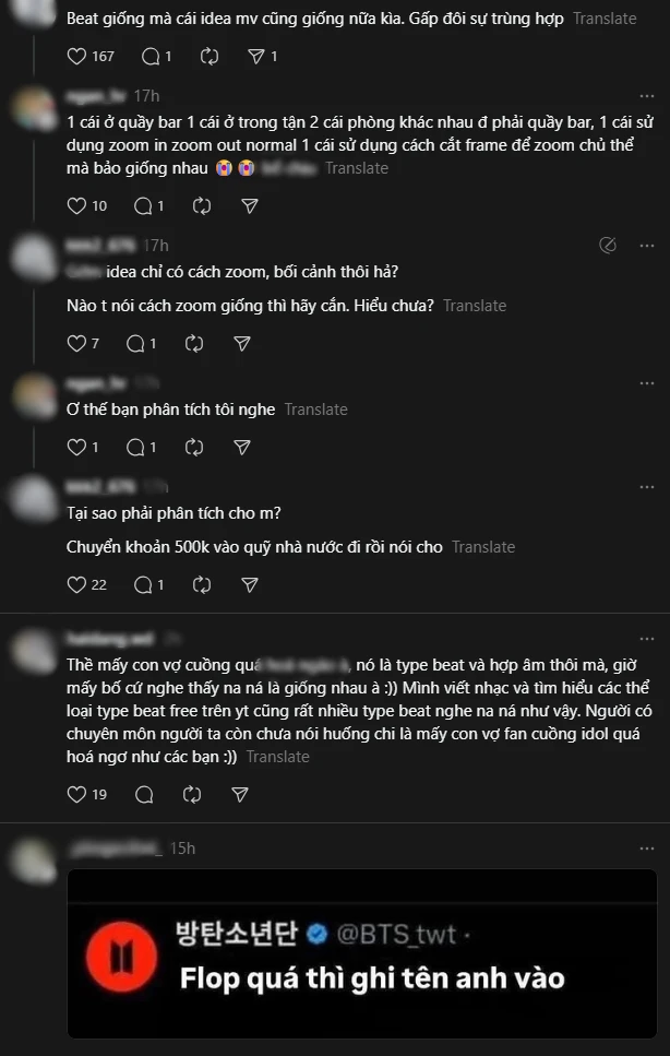 Dù nhiều ý kiến phản bác đây chỉ là sự tương đồng về thể loại và cách sử dụng nhạc cụ, nhưng làn sóng chỉ trích dành cho JSOL vẫn gay gắt. Tranh cãi càng đi xa khi JSOL là Anh Trai thứ hai vướng nghi vấn đạo nhái Jung Kook. Trước đó, Hùng Huỳnh từng hứng chịu “bão” chỉ trích vì MV Chẳng Thể Nhắm Mắt bị cho là giống với Standing Next To You . Dù hai vụ việc không liên quan trực tiếp, nhưng cùng nằm trong “vũ trụ Anh Trai Say Hi” khiến cộng đồng ARMY càng có lý do chỉ trích, tạo ra sức ép lớn cho JSOL.