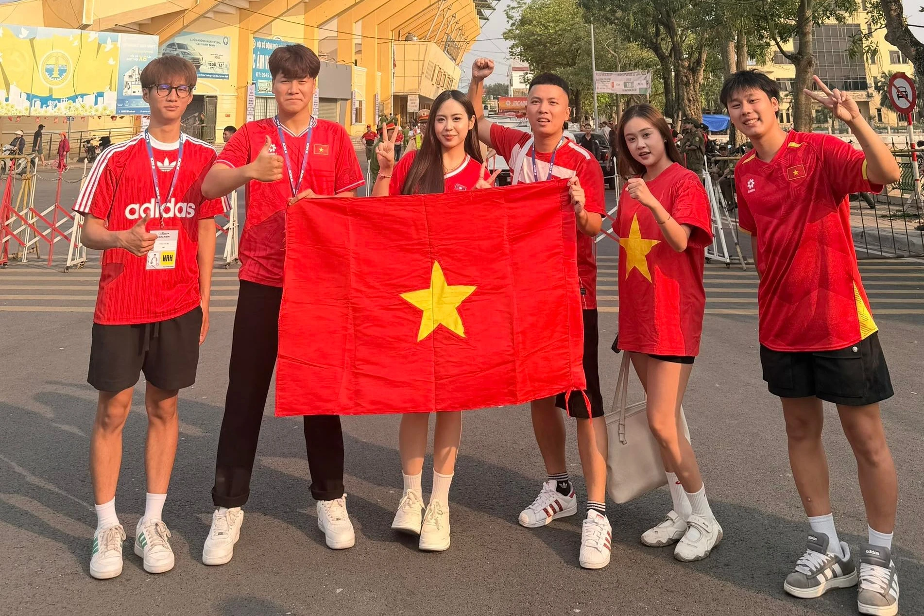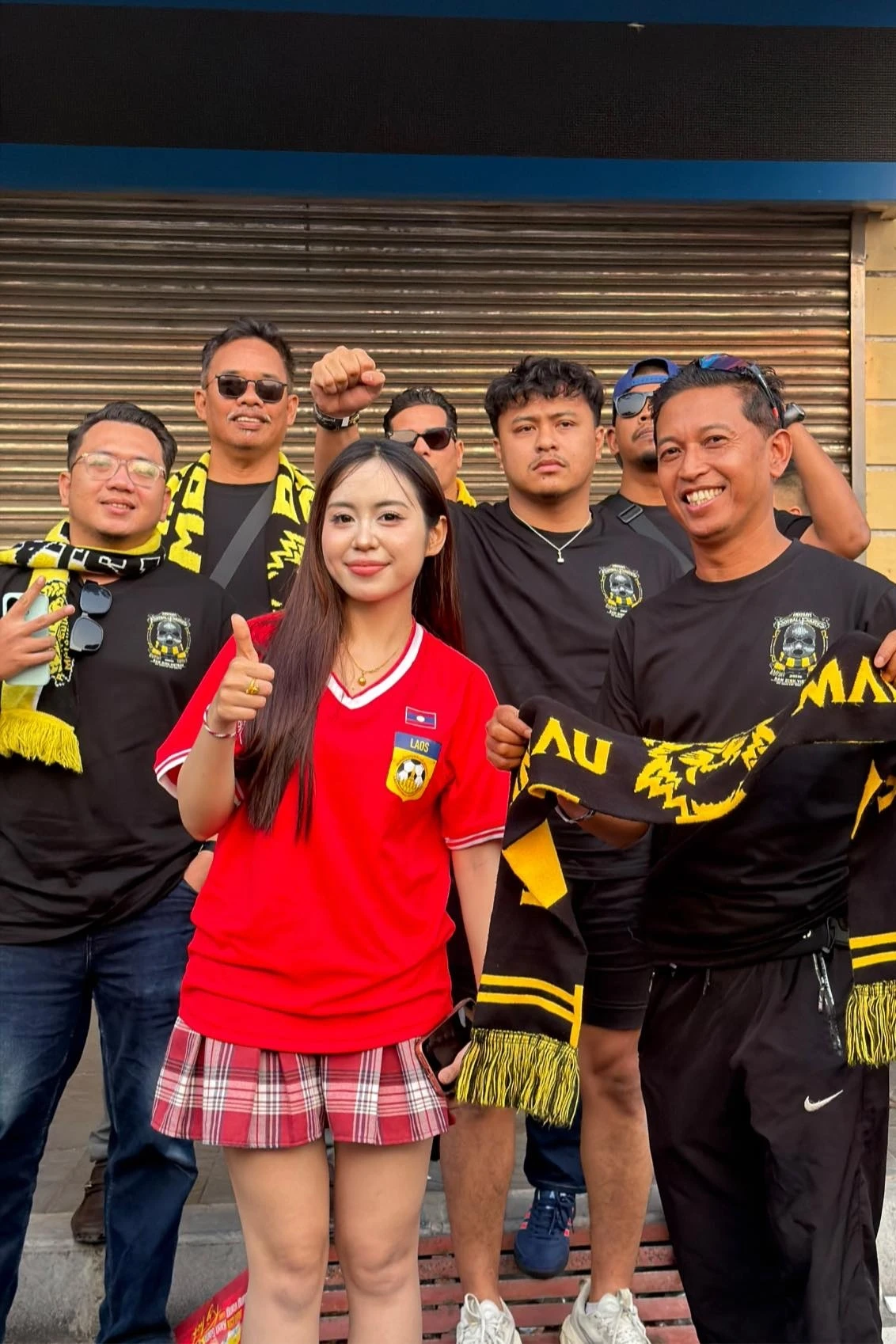 Ngay từ sớm, không khí bên ngoài sân đã trở nên sôi động khi đông đảo cổ động viên đổ về "chảo lửa" để tiếp lửa cho thầy trò HLV Kim Sang-sik. Trong số đó, sự xuất hiện của Maysaa (tên thật Bouavone Phanthabouasy, sinh năm 2001, quốc tịch Lào) nhanh chóng thu hút sự chú ý.