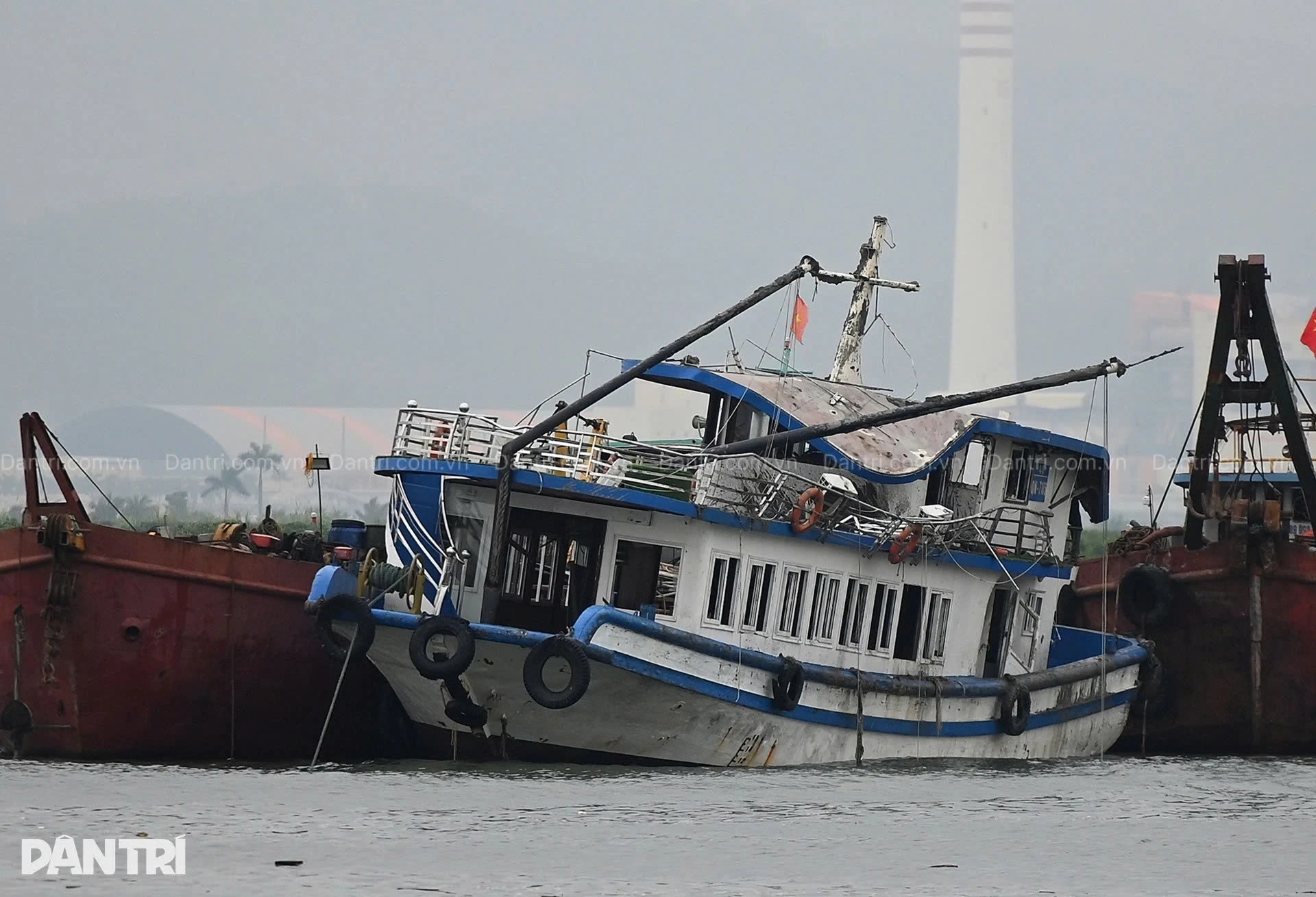 Hiện trạng tàu Vịnh Xanh sau khi được trục vớt (Ảnh: Thành Đông).