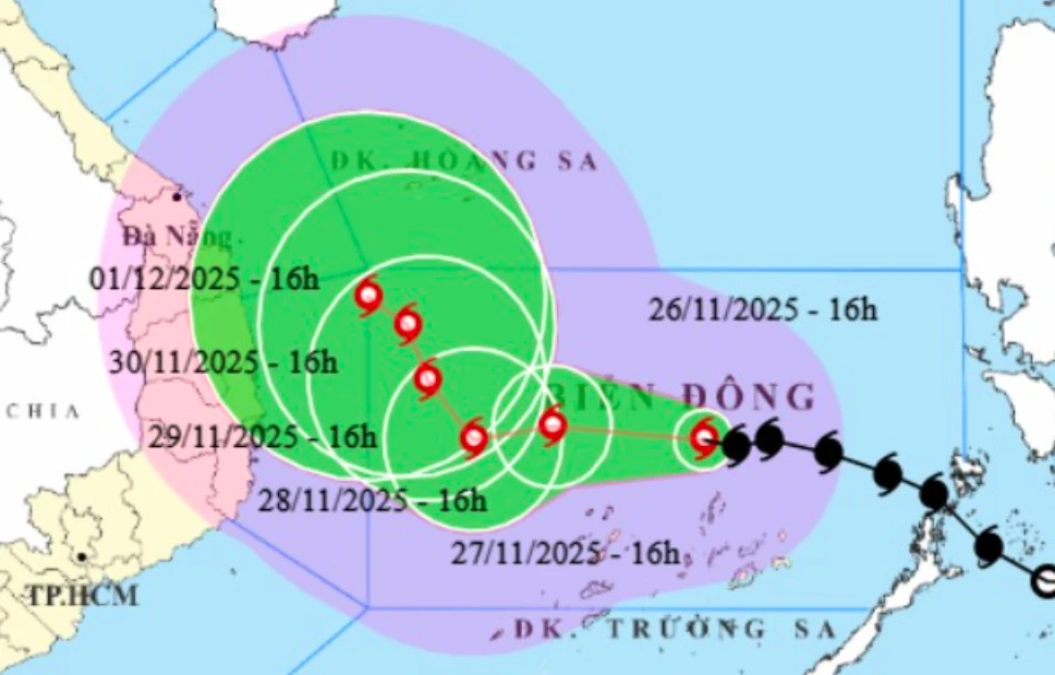 Chiều cùng ngày, Trung tâm Dự báo khí tượng thủy văn quốc gia cho biết, sau 18 giờ đi vào Biển Đông, bão số 15 từ cấp 8 mạnh lên cấp 10. Dự báo trong 24 - 48 giờ tới, bão số 15 tiếp tục mạnh lên sau đó suy yếu dần. Dự báo trong đêm 27.11, không khí lạnh tăng cường bắt đầu tác động nên từ chiều 29.11, bão bắt đầu suy yếu. Đến khoảng ngày 30.11 - 1.12, bão giảm xuống cấp 9 - 10.