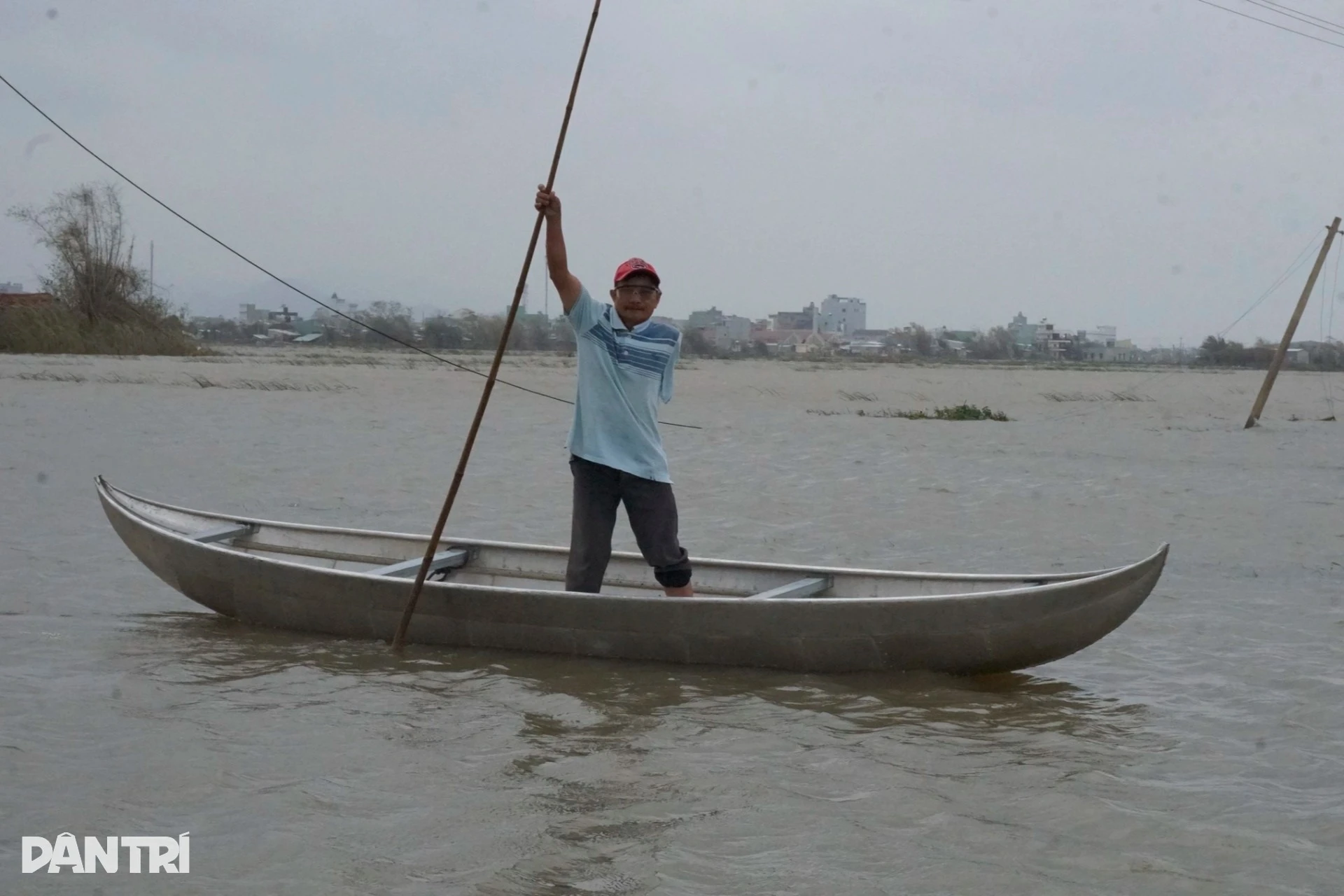 Chiều 27/11, người dân thôn Lạc Điền, xã Tuy Phước Đông, tỉnh Gia Lai vẫn di chuyển bằng thuyền để đi nhận hàng cứu trợ (Ảnh: Doãn Công).