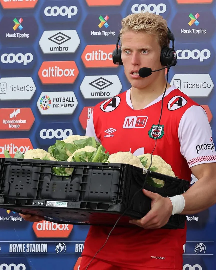 Người hâm mộ bóng đá quốc tế vốn đã quen với hình ảnh các ngôi sao nhận danh hiệu “Cầu thủ xuất sắc nhất trận” kèm theo những tấm bảng tài trợ bóng loáng hay những biểu tượng kim loại sang trọng. Thế nhưng tại Na Uy, hình ảnh một tiền đạo vừa lập cú đúp, mồ hôi còn đọng trên trán nhưng tay lại ôm khay trứng tươi hay bao khoai tây đã trở thành một phần không thể thiếu của giải đấu.