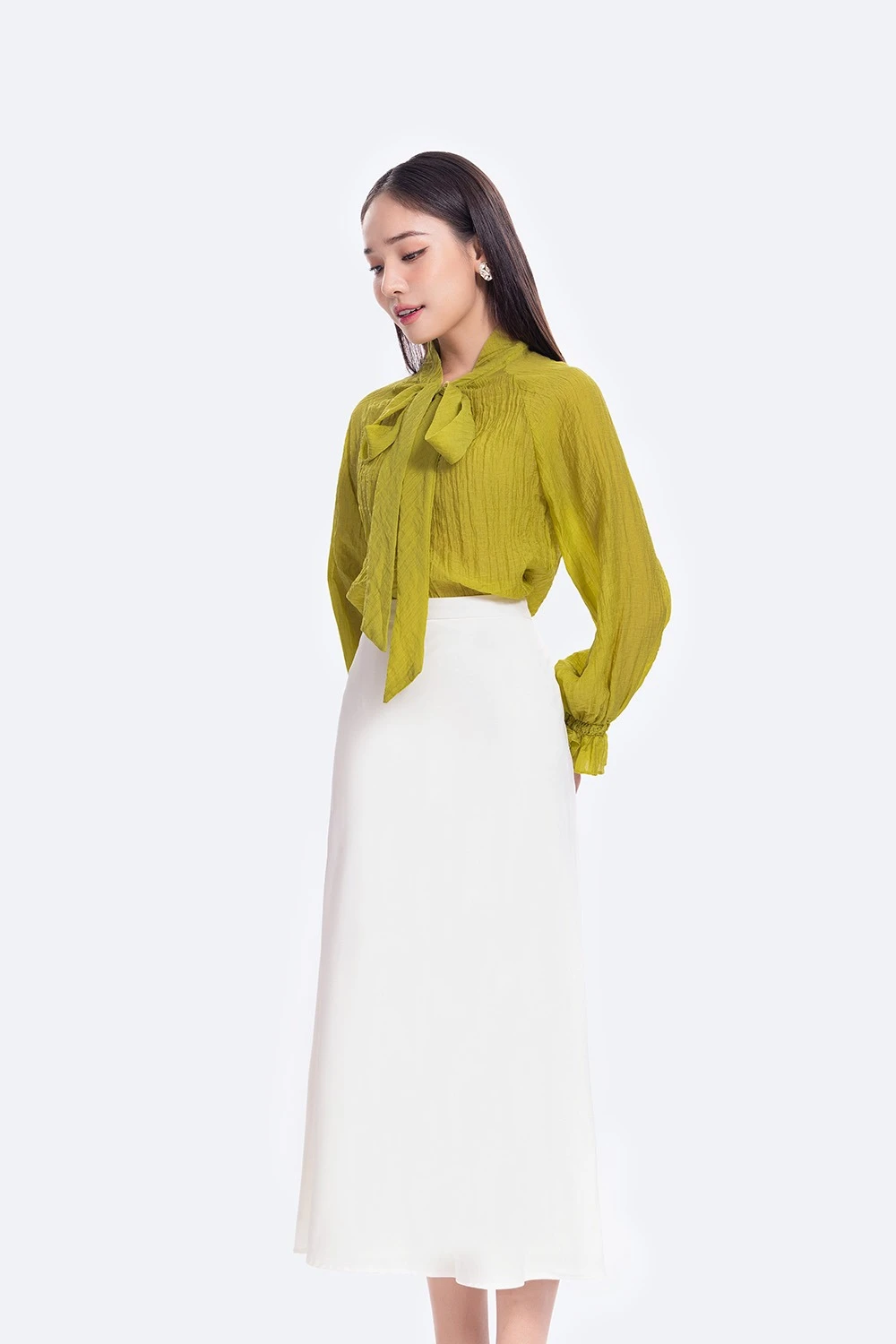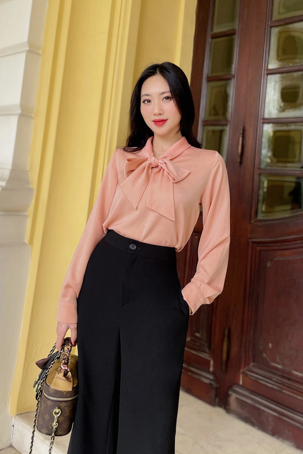 Thay vì những chiếc áo sơ mi quen thuộc, hãy thử thách bản thân với những biến tấu từ chiếc áo blouse thắt nơ đầy nhẹ nhàng. Đừng ngại ngần kết hợp chiếc áo nữ tính này cùng quần tây ống rộng cạp cao hay chân váy bút chì đầy thanh lịch. Hoặc với các cô nàng yêu thích sự phá cách thì phối quần jeans rách cùng áo blouse thắt nơ cũng là một lựa chọn hoàn hảo. Đừng quên thêm một chiếc thắt lưng hoặc túi xách sẽ giúp bạn khẳng định cá tính và tạo nên một diện mạo công sở độc đáo, không lẫn vào đâu được.