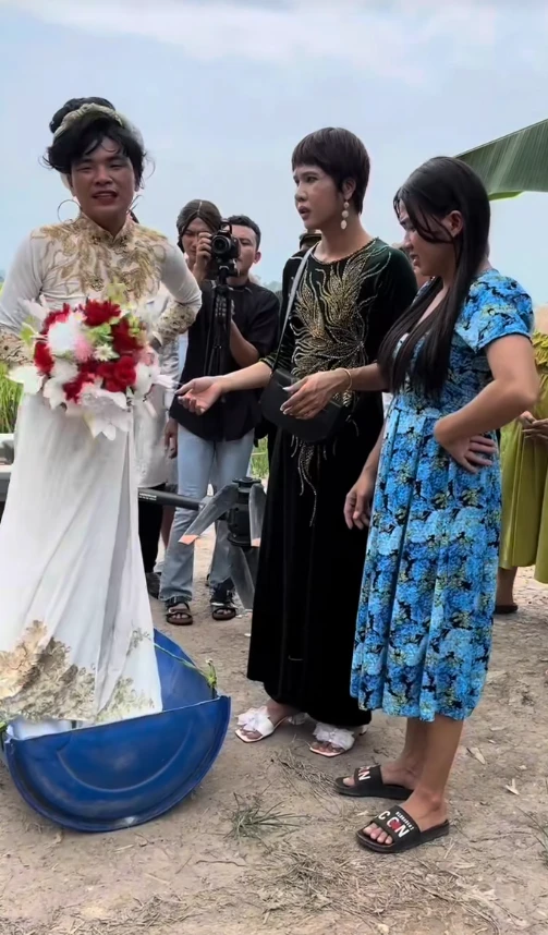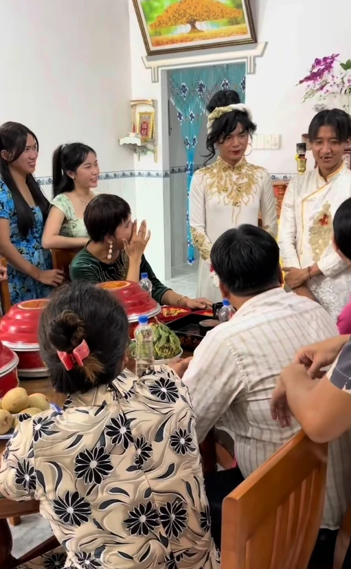 Không chỉ dừng lại ở việc giả gái, làm cô dâu kết hôn thì nam TikToker này còn hóa thân thành bố mẹ chồng/ bố mẹ vợ, cô chú hàng xóm, bạn bè, người yêu cũ,… đi đám cưới. Bởi thế, content đám cưới trên kênh của TikToker miền Tây này cứ phải gọi là rộn ràng, ê hề ê hề.