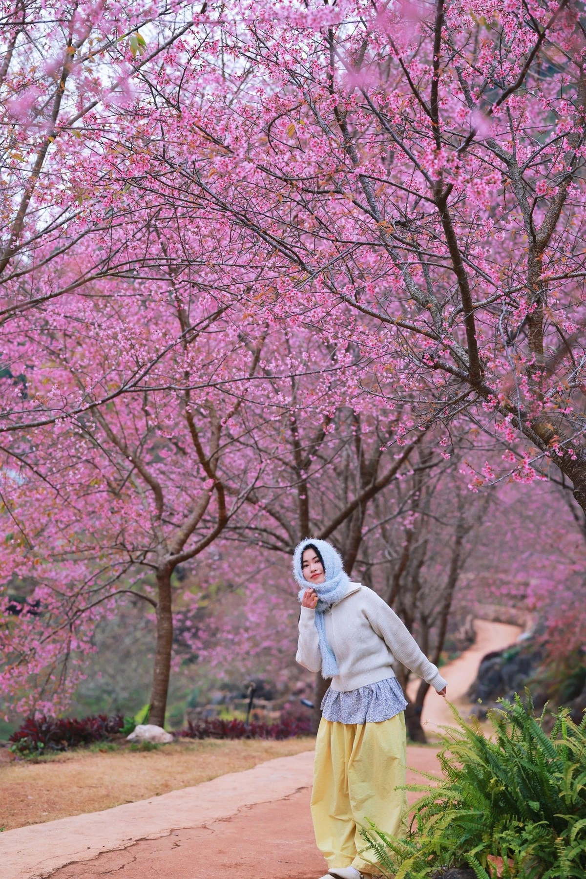 Chính sự "gần gũi" ấy khiến mai anh đào nhanh chóng trở thành điểm check-in được giới trẻ yêu thích, thu hút đông đảo du khách tìm đến lưu lại những khoảnh khắc đẹp đầu năm. Ảnh Fanpage Đi trốn không