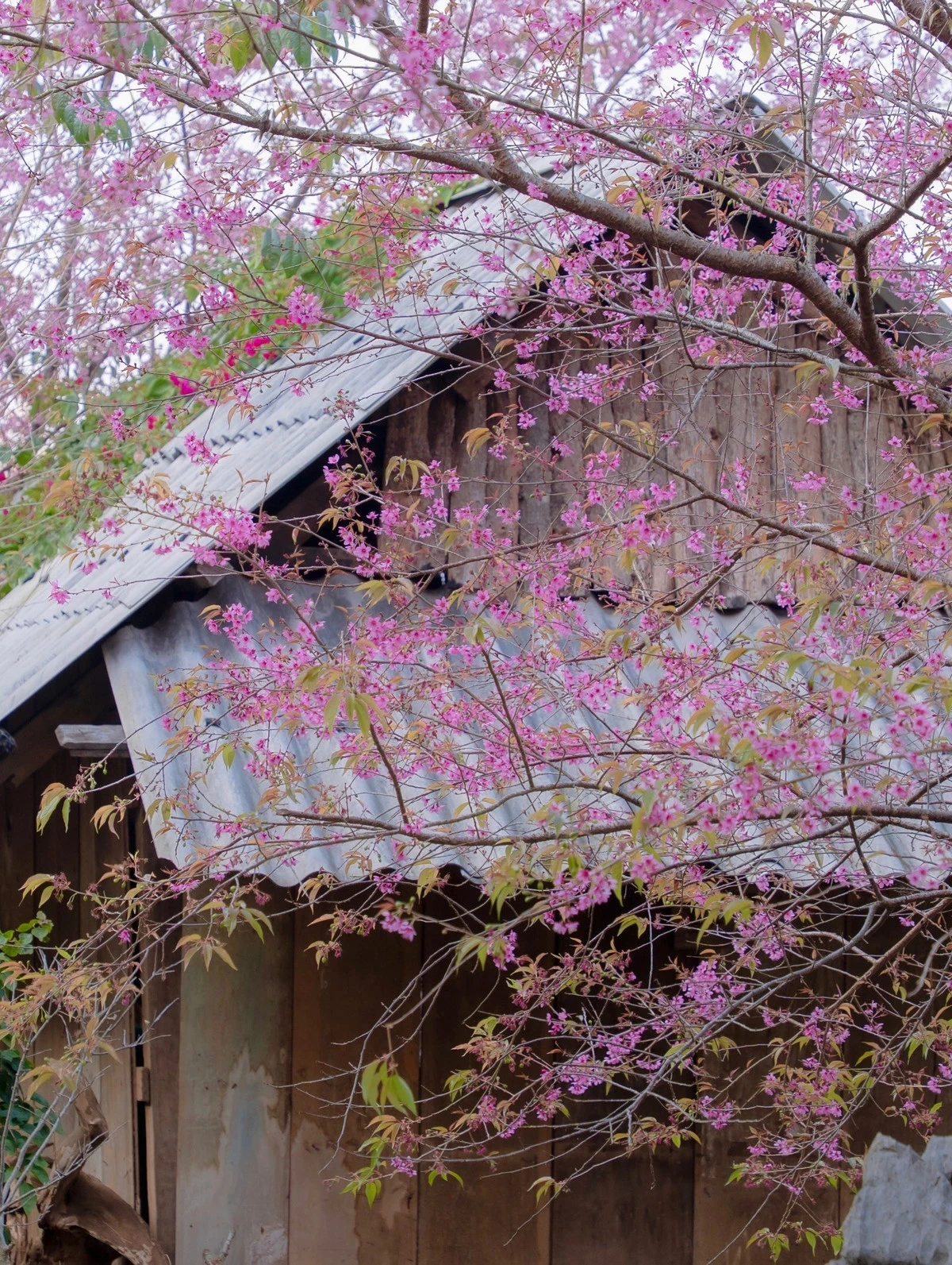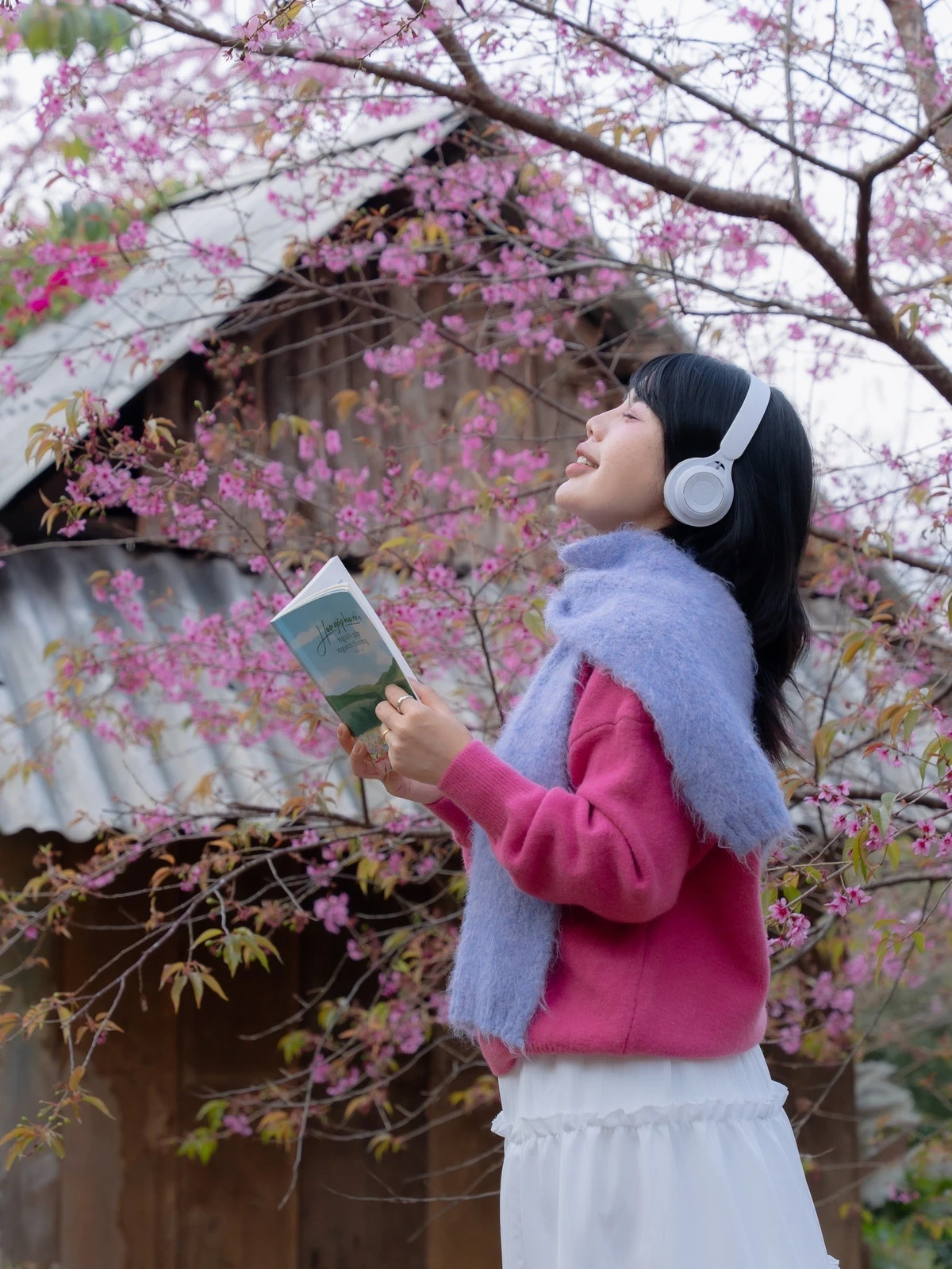 Khác với hoa mơ, hoa mận thường tập trung ở các bản làng ven trung tâm, mai anh đào lại hiện diện ngay trên những con phố quen thuộc. Chỉ cần thong thả dạo bước hay chạy xe chầm chậm qua các cung đường, du khách đã có thể bắt gặp sắc hoa hồng phớt nổi bật dưới nền trời xanh và nắng xuân dịu nhẹ. Ảnh Fanpage Đi trốn không