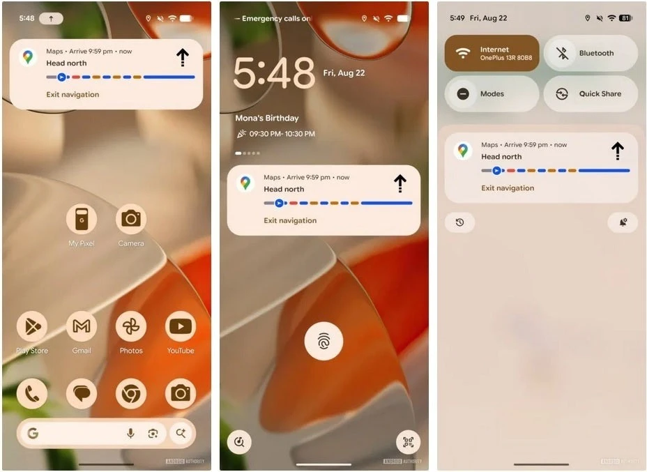 Theo PhoneArena , một trong những tính năng được người dùng Android mong chờ nhất cuối cùng bắt đầu xuất hiện, đó là khả năng xem chỉ đường Google Maps ngay trên màn hình khóa và thanh trạng thái. Cải tiến này hứa hẹn sẽ chấm dứt tình trạng phải chuyển qua lại giữa các ứng dụng và bỏ lỡ các ngã rẽ quan trọng.