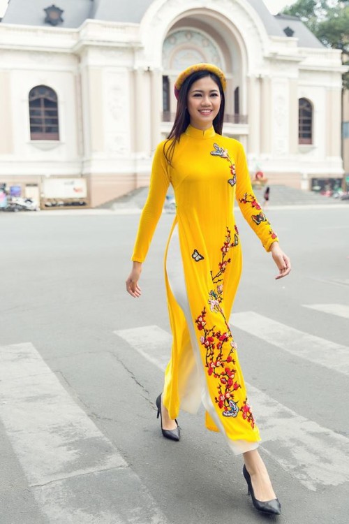 Trong những ngày tết đến, xuân về nàng á hậu tạm gác lại muôn vàn váy áo hiện đại để chọn cho mình tà áo dài truyền thống để du xuân.