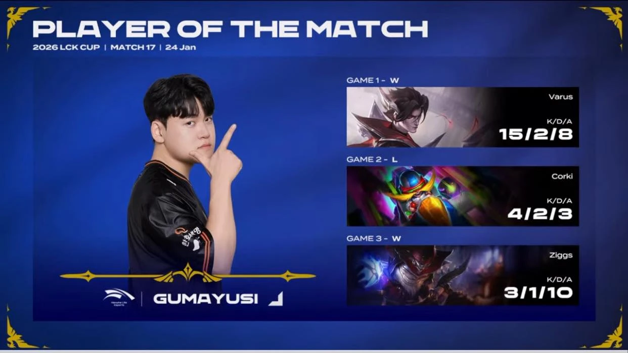 Trong trận gặp DNS, Gumayusi ít nhiều đã cho thấy lại phong thái trong những ngày còn khoác áo T1: Một Xạ Thủ đi lane từ hòa tới thắng, khả năng xả sát thương và đặc biệt là những tình huống clutch kinh điển. Quan trọng hơn, anh đã giúp HLE giành chiến thắng và đây có thể là tiền đề cho sự trở lại của nhà đương kim vô địch LCK Cup trong các trận đấu sắp tới.