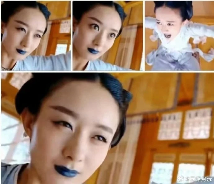 Trong khi đó, Triệu Lệ Dĩnh, người vốn nổi tiếng với gương mặt bầu bĩnh, đôi mắt long lanh lại bị dìm không thương tiếc với màu môi xanh phát sáng. Netizen lập tức gọi đùa là “makeup trúng độc level max”, khiến những phân đoạn vốn nghiêm túc lại trở thành meme huyền thoại.