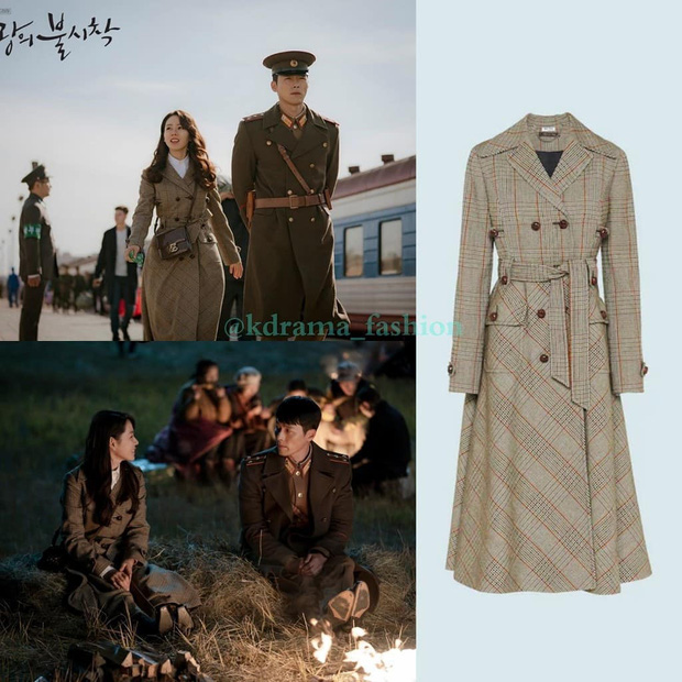 Một trong những thiết kế trench coat của Yoon Se Ri gây bão ngay từ giây phút cô mặc để đi cùng Ri Jung Hyuk vào Bình Nhưỡng để làm hộ chiếu. Thiết kế theo phong cách quân nhân với dáng áo dài, thắt eo cùng những đường kẻ mảnh mai khi mặc lên người cực kỳ tôn dáng, tôn chiều cao. Thiết kế của MIU MIU trị giá 4,200$ – khoảng gần 100 triệu đồng.