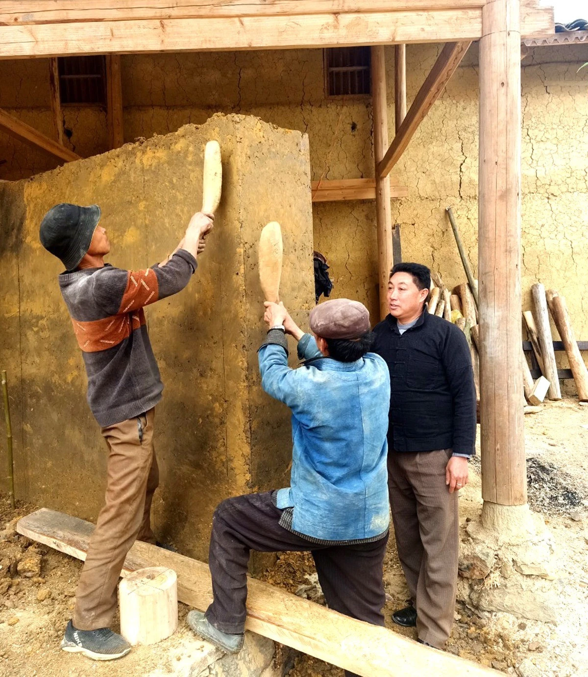 Ông Sình Dỉ Gai (mặc áo đen) hướng dẫn bà con trong thôn cải tạo cơ sở hạ tầng để làm mô hình homestay