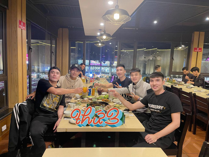 Bùi Tiến Dụng mừng sinh nhật với các đồng đội mới ở Hải Phòng (Ảnh: FBNV)