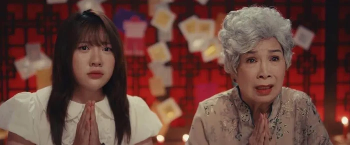 NSND Kim Xuân hóa thân vào vai người bà nội đầy tâm tư trong một phân cảnh xúc động cùng diễn viên Uyển Ân. - Ảnh: NSX