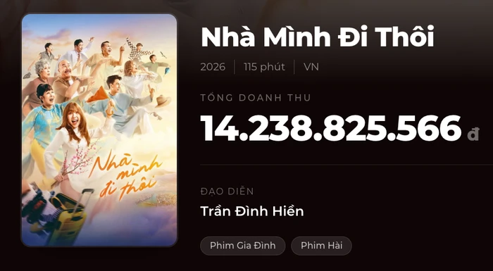 Trong khi đó, Nhà Mình Đi Thôi thôi lại khiêm tốn hơn nhiều với tổng doanh thu khoảng 14 tỷ đồng, phản ánh hành trình khá trầm lắng trên đường đua phòng vé và không tạo được cú bật đủ mạnh để duy trì sự chú ý lâu dài.